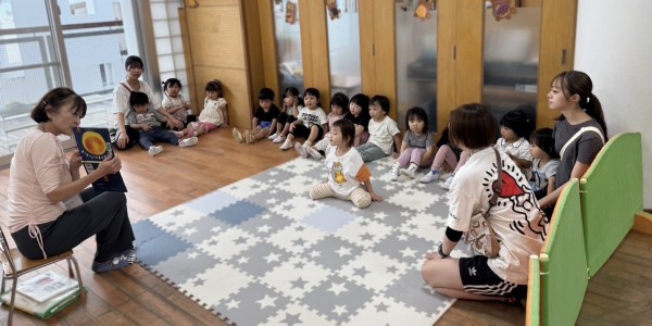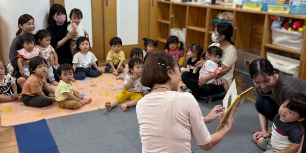 保育園ではあまり見ることのない絵本を読んでもらって、みんなすごく嬉しそうでした。