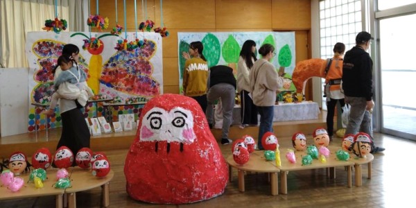 クレパスや絵の具で描いた絵画をはじめ、紙粘土などで作った立体作品を展示しました。